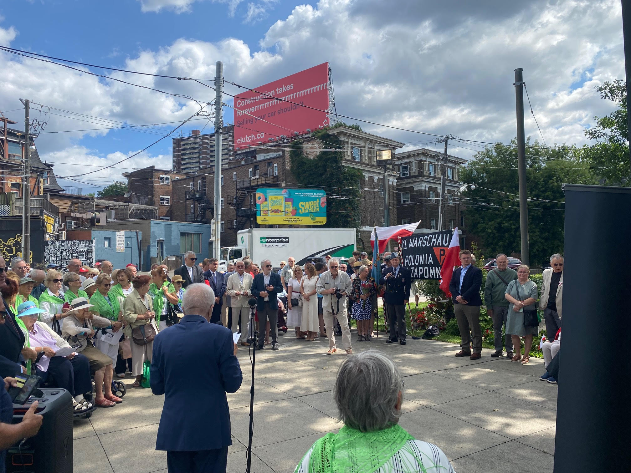 Uroczystość prowadził Pan Jan Cytowski i Okręg KPK Toronto oraz Prezes Towarzystwa Warszawskiego. Było dużo przedstawicieli Organizacji Polonijnych KPK z różnych okolic, ZPwK, Koło Pań Nadzieja, ZNP ….