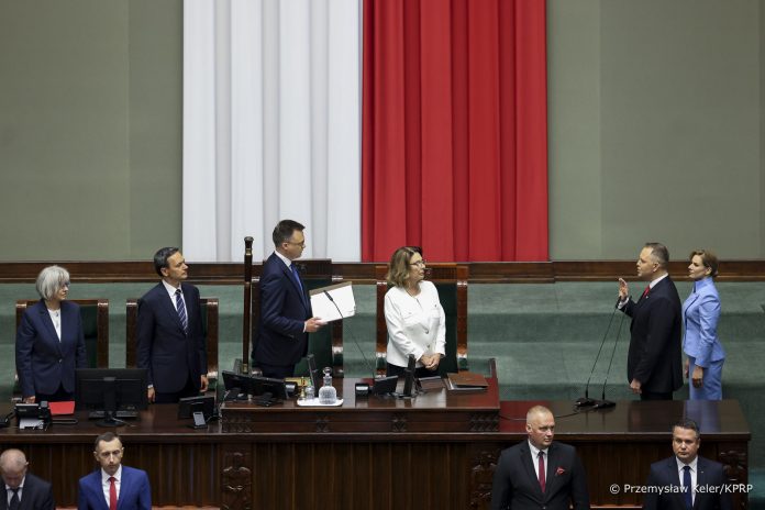 Po złożeniu przysięgi Prezydent RP Karol Nawrocki wygłosił swoje pierwsze orędzie przed Zgromadzeniem Narodowym. Konstytucja zastrzega, że prezydenckie orędzie nie może być przedmiotem parlamentarnej debaty.