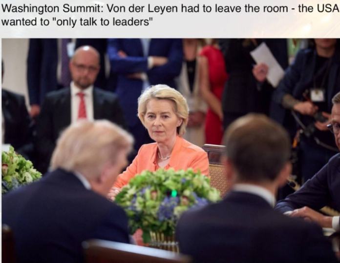 Amerykanie bez ogródek wyjaśnili to, o czym wielu obywateli myśli już od dawna: mianowicie, że kierowana przez nią Komisja Europejska nie jest demokratycznie legitymizowanym rządem, a jedynie rozdmuchaną administracją. Podczas gdy kanclerz Friedrich Merz, prezydent Francji i inni wybrani szefowie rządów mogli pozostać przy stole razem z Trumpem – samozwańcza „przewodnicząca” musiała opuścić salę.