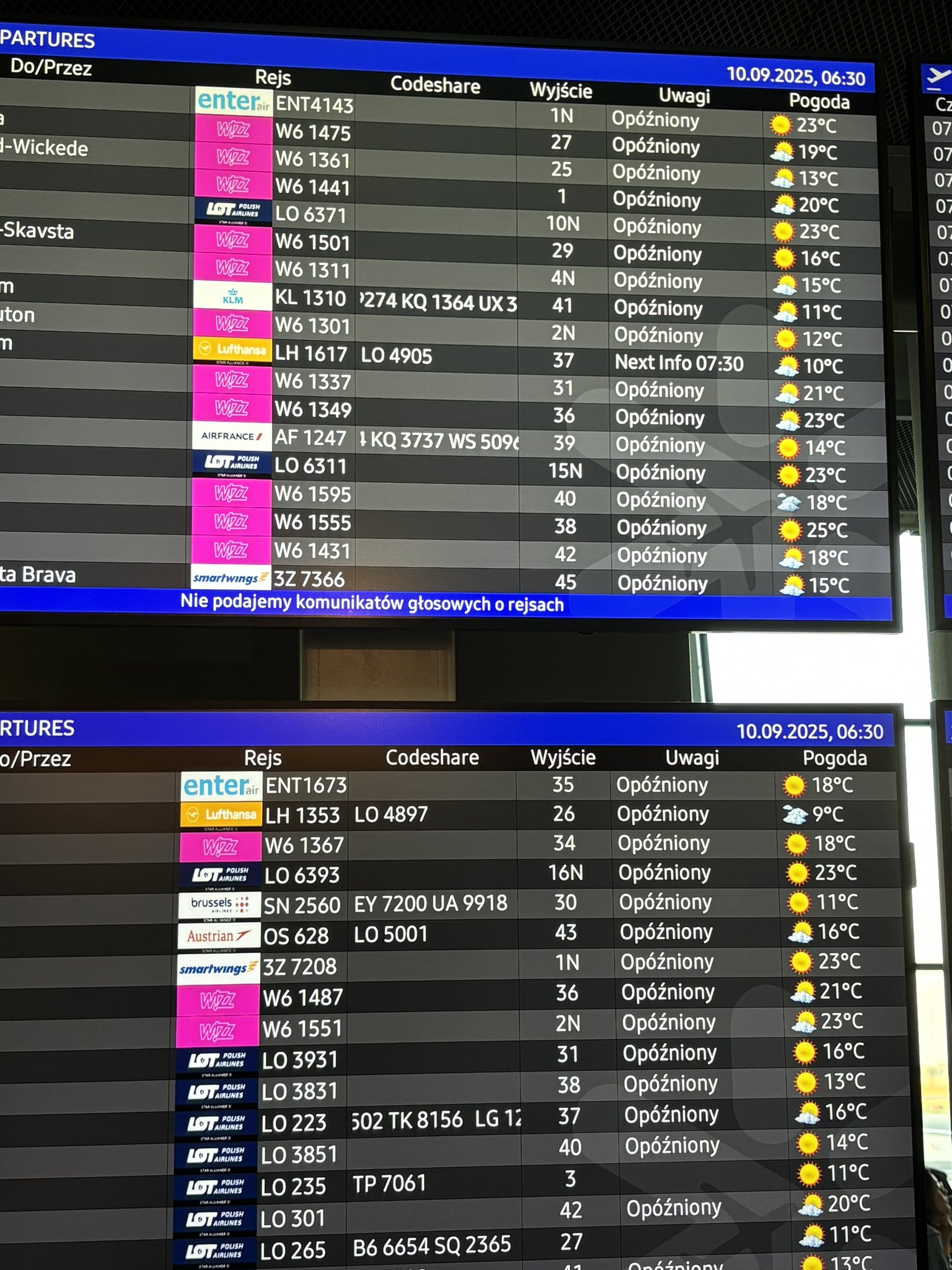Lotnisko Chopina w Warszawie to największe lotnisko w Polsce. Obecnie na tablicy przylotów lotniska wyświetlają się liczne opóźnienia. Na przykład lot Wizz Air z Kopenhagi, który miał przylecieć o 10:10 czasu lokalnego, ma teraz przylot o 12:01.