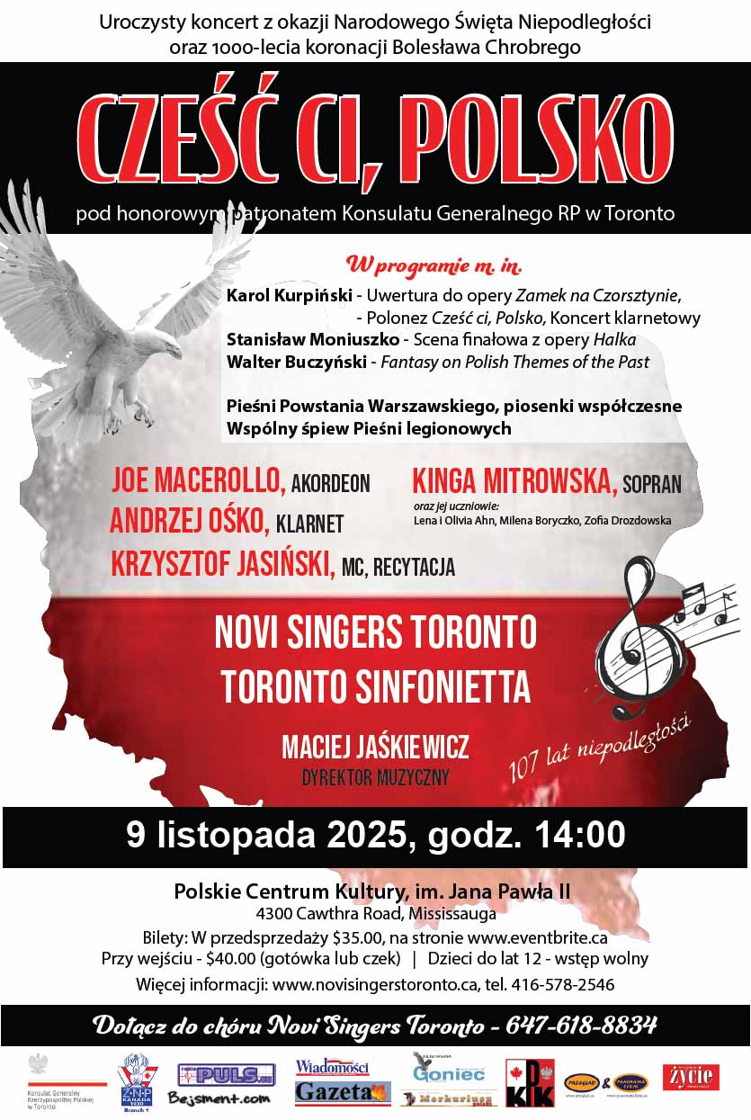 Aby uczcić to Święto zapraszamy wszystkich na uroczysty koncert “Cześć Ci, Polsko” pod patronatem Konsulatu Polskiego w Toronto.