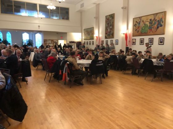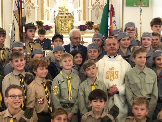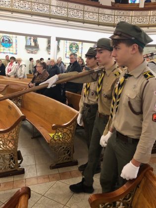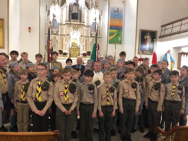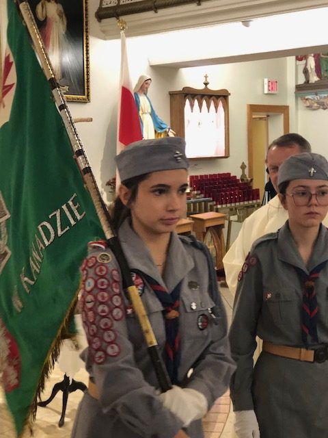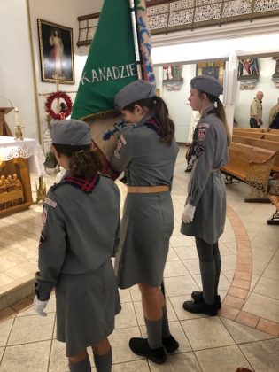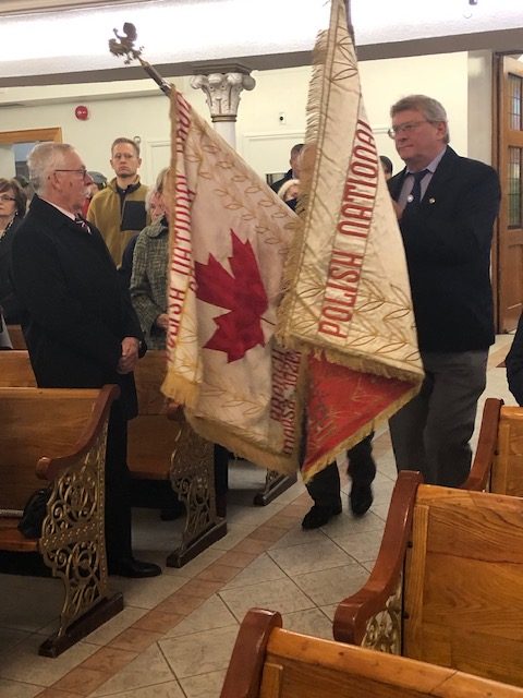 Uroczystą Mszę św. w intencji Ojczyzny, ofiarowaną przez KPK Okręg Toronto, poprzedziła pieśń „Bogurodzica” odśpiewana na trzy męskie głosy. Przed rozpoczęciem Eucharystii, prezes p. Jan Cytowski przedstawił intencję mszalną i przypomniał, że 11 listopada celebrujemy również kanadyjskie święto pamięci. Pamiętając o tych, którzy poświecili życie i zdrowie dla odzyskania Polski niepodległej modlimy się o pomyślność Ojczyzny i utrzymanie suwerenności. Prezes złożył podziękowanie proboszczowi parafii o. Sławomirowi Oblakowi OMI i powitał przedstawicieli organizacji: Związku Narodowego Polskiego w Kanadzie Zarządu Głównego i Gminy 1, Koła 20 Stowarzyszenia Polskich Kombatantów, Koła Pań „Nadzieja”, Fundacji Charytatywnej Kongresu Polonii Kanadyjskiej, liczną grupę harcerzy Związku Harcerstwa Polskiego poza granicami kraju oraz członków całej Polonijnej Rodziny. Wniesione zostały sztandary kilku organizacji. Mszy świętej przewodniczył ksiądz proboszcz, o. Sławomir. Wygłoszona przez Ojca homilia była bardzo współczesna i patriotyczna, podkreślająca troskę o dobro wspólne, o wspólnotę, o Ojczyznę. Na zakończenie mocno zabrzmiała polska patriotyczna pieśń religijna „Boże coś Polskę. Uroczysty wystrój kościoła podkreślał doniosłość tego dnia.