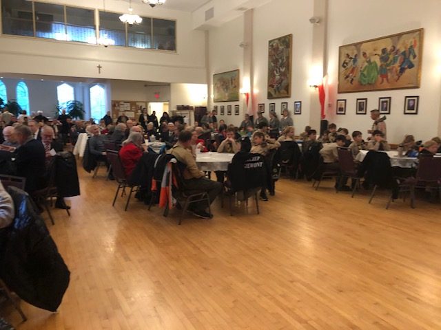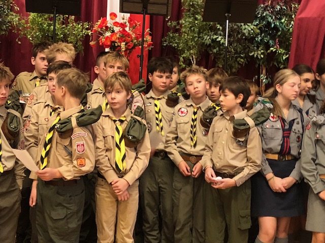 Część oficjalna obchodów miała miejsce w sali parafialnej, gdzie na harcerzy czekał mały poczęstunek od KPK OT, o który zadbała p. Aniela Gańczak, wiceprezes Okręgu. Spotkanie rozpoczęło się Hymnem i Rotą. Głównym punktem programu było wystąpienie prezesa Jana Cytowskiego, który m.in. powiedział: