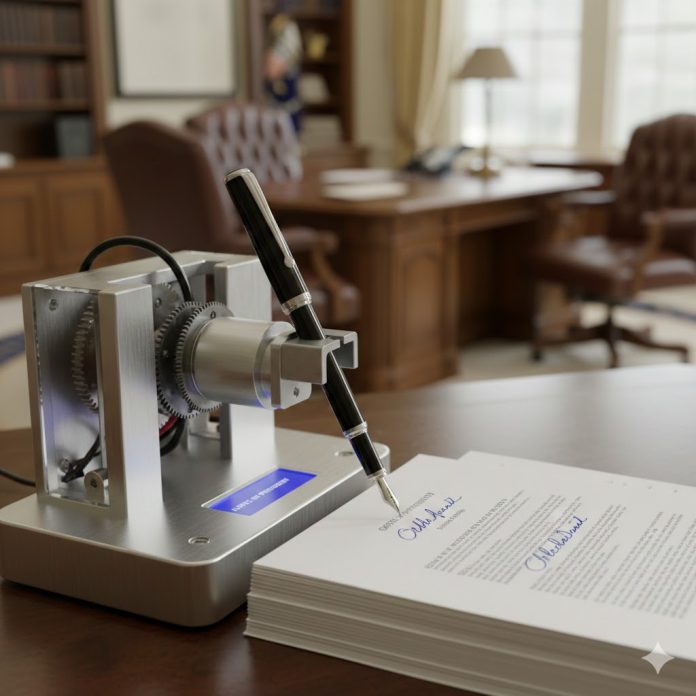Autopen to mechaniczne urządzenie do reprodukowania podpisu, które od XIX wieku (od czasów Thomasa Jeffersona) jest używane przez prezydentów USA do podpisywania rutynowych dokumentów, takich jak listy, ustawy czy nawet niektóre rozporządzenia. Departament Sprawiedliwości w 2005 roku potwierdził, że podpisy autopenem są prawnie ważne, o ile prezydent zatwierdzi treść dokumentu – nie musi osobiście trzymać pióra.