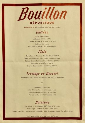 Kolejny raz się zbieramy. Tym razem, to czasowa przeprowadzka do Katowic. Na razie postanawiamy wybrać się wspólnie na obiad z naszymi gospodarzami z Bastylii. Mateusz sugeruje restaurację koło Republiki. Nie znamy jej, ale już sama nazwa jest smakowita – „Bouillon République”. Pogoda jest świetna, idziemy więc piechotą. Przed wejściem potrójny wąż ludzi. Wąż przesuwa się powoli. Co kilka minut ktoś z obsługi wypada na dwór i wpuszcza grupki, w zależności od tego, jaki zwolnił się stolik. My jesteśmy w piątkę i widać nie ma takich stolików, bo odstoimy swoje statystyczne dwie godziny i trochę. Strona restauracji pokazuje takie właśnie cyfry.