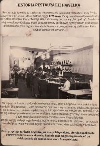 Hawełka to nie tylko jedzenie, to także osobliwe wnętrze. Sień przy wejściu zdobią piękne witraże, a sala na piętrze, zwana „Tetmajerowską”, ozdobiona jest malowidłami tegoż artysty.