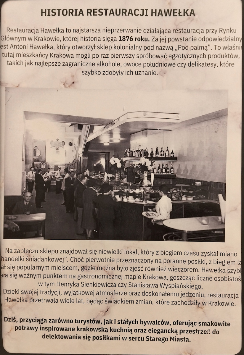 Po śmierci Hawełki, firmę odziedziczył subiekt Franciszek Macharski, który w 1913 roku przeniósł sklep do pałacu Spiskiego oraz otworzył istniejącą do dziś restaurację.