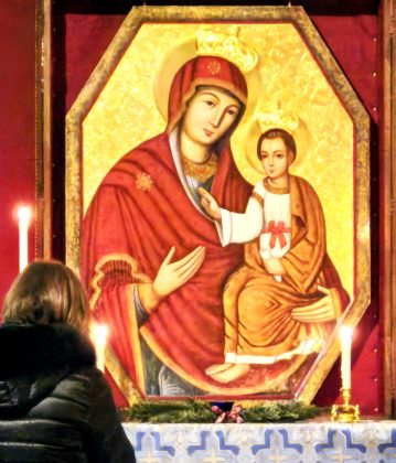 A dwa dni wcześniej, w tamtejszej parafii, miała miejsce wizyta cudownej ikony Matki Boskiej Jarosławskiej. Z tej okazji odprawiane zostało uroczyste nabożeństwo przed cudowną ikoną Matki Boskiej Jarosławskiej, nazywanej „Drzwiami Miłosierdzia”. Wydarzenie to zgromadziło licznych wiernych, dla których obecność ikony była czasem szczególnej modlitwy i duchowego skupienia. Ze Szczecina ikona wyruszy następnie do kolejnych parafii eparchii wrocławsko-koszalińskiej, kontynuując swoją pielgrzymkę po wspólnotach Kościoła greko-katolickiego. Historia kultu Matki Boskiej Jarosławskiej sięga XVII wieku. Sama ikona powstała prawdopodobnie w latach 1630–1640 i pierwotnie znajdowała się w jarosławskiej cerkwi Zaśnięcia Najświętszej Marii Panny. Już pod koniec XVII wieku znany był jej żywy kult, a z 1722 roku pochodzi opis licznych wotów świadczących o doznanych łaskach. W XVIII wieku obraz był kilkakrotnie odnawiany i ozdabiany nowymi darami dziękczynnymi. Szczególnym miejscem związanym z ikoną stała się cerkiew Przemienienia Pańskiego w Jarosławiu. Parafia powstała w 1717 roku, a budowa nowej świątyni trwała wiele lat z powodu trudności finansowych. Dopiero dzięki wsparciu burmistrza Jarosławia Eliasza Wapińskiego udało się zakończyć prace, a cerkiew została uroczyście poświęcona 17 sierpnia 1747 roku przez biskupa przemyskiego Onufrego Szumlańskiego. W kolejnych latach wyposażano wnętrze, wzniesiono kopułę, dzwonnicę oraz zabudowania parafialne. Po przeniesieniu ikony do nowej cerkwi jej kult znacznie się umocnił. Doznane łaski zaczęto zapisywać w specjalnej księdze, a wierni licznie przybywali do Jarosławia. W 1760 roku papież Klemens XIII udzielił pierwszego odpustu związanym z modlitwą przed ikoną, a kolejni papieże – Klemens XIV i Pius VI – potwierdzali i rozszerzali te przywileje. Kulminacją było wydanie 22 listopada 1779 roku bulli papieskiej, w której Stolica Apostolska uznała ikonę Matki Boskiej Jarosławskiej za cudowną i udzieliła pełnego odpustu. W 1879 roku, w setną rocznicę tej bulli, odbyła się uroczysta koronacja ikony diademami ufundowanymi przez biskupa przemyskiego Jana Stupnickiego. Wydarzeniu temu towarzyszył generalny remont cerkwi. Wraz ze wzrostem liczby pielgrzymów pojawiła się potrzeba rozbudowy świątyni, którą zrealizowano na początku XX wieku pod kierunkiem ks. kanonika Cypriana Chotynieckiego. Przebudowaną cerkiew poświęcono w 1912 roku, a jej powierzchnia została podwojona. Tragiczny okres II wojny światowej i powojenne deportacje ludności ukraińskiej doprowadziły do likwidacji parafii greko-katolickiej w Jarosławiu. Cerkiew została odebrana wiernym, a jej wyposażenie rozproszone lub zniszczone. Ikona Matki Boskiej Jarosławskiej trafiła do muzeum. Dopiero w latach 80. XX wieku, po długich staraniach, świątynia wróciła do grekokatolików, którzy podjęli się jej gruntownej odbudowy. Odnowiona cerkiew została ponownie poświęcona w 1993 roku i podniesiona do rangi konkatedry. Szczególnym momentem w jej dziejach była koronacja ikony Matki Boskiej Jarosławskiej w sierpniu 1996 roku. Decyzję o koronacji podjął papież Jan Paweł II, a uroczystości zgromadziły tysiące wiernych z Polski i zagranicy. Ikona stała się wówczas symbolem duchowego odrodzenia kościoła greko-katolickiego w Polsce. Dziś jarosławskie sanktuarium jest najważniejszym ośrodkiem kultu maryjnego Kościoła Greko-katolickiego w kraju. Ikona „Brama Miłosierdzia” czczona jest przez wiernych obrządków wschodnich i zachodnich. Jej znaczenie podkreśliła także pielgrzymka do Watykanu w 2015 roku, kiedy na prośbę papieża Franciszka została wystawiona podczas inauguracji Nadzwyczajnego Roku Miłosierdzia na placu św. Piotra. Wizyta ikony w Szczecinie wpisuje się w długą historię jej obecności w życiu duchowym wiernych. Jest ona nie tylko przypomnieniem bogatego dziedzictwa religijnego, lecz także zaproszeniem do modlitwy, pojednania i nadziei, które od wieków symbolizują „Drzwi Miłosierdzia”.
