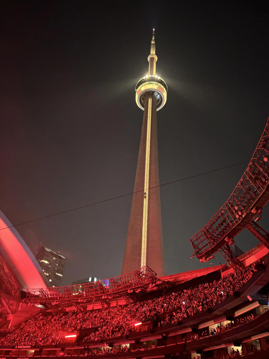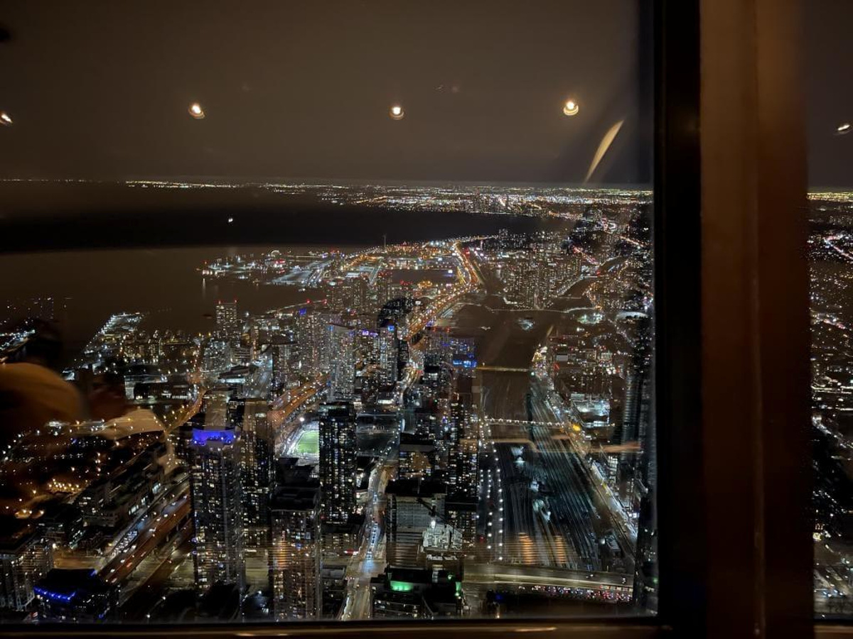 Rozrywek w czasie okołoświątecznym i wczesno styczniowym mieliśmy pod dostatkiem, a koncentrowały się one głównie wokół różnorodnych obchodów osiemdziesiątej rocznicy urodzin Pana Męża. Dużą atrakcją okazała się rodzinna kolacja w wieczór sylwestrowy, spędzona w restauracji 360 na wieży Canadian National Tower ( CNT ). Ta wieża to najbardziej rozpoznawalny symbol Toronto – zbudowana w 1976 roku; mając 553 metry wysokości, do 2007 roku była najwyższą, wolnostojącą konstrukcją na świecie. Jest ona ważnym punktem orientacyjnym w mieście, kolorowo podświetlona zmienia swe barwy przy okazji świąt i różnych wydarzeń np. Dnia Kanady. Platformy na wysokości 346 i 447 metrów ( ze szklaną podłogą, tak że widać miasto pod stopami ) dają widok na całe Toronto i jezioro Ontario, a w słoneczny dzień aż na wodospad Niagara oddalony o 60 km w linii prostej, Sama obrotowa restauracja to elegancka, jasna sala z oknami od podłogi do sufitu, okręcająca się o 360 stopni w ciągu 72 minut – i wieczorem daje to możliwość oglądania morza świateł aż po horyzont. Cena podstawowa wlicza minimalną kwotę do wydania (150$ na osobę – w tym 3-daniowa kolacja z kieliszkiem szampana i wjazd na najwyższy punkt widokowy).