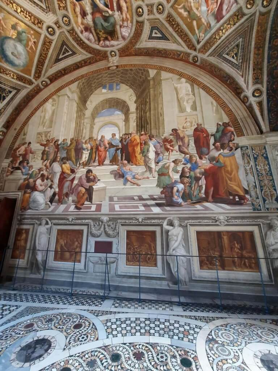 Dwa lata temu po raz trzeci odwiedziliśmy Muzea Watykańskie. Znajduje się tam ogromna kolekcja dzieł sztuki: rzeźby starożytnej Grecji i Rzymu, malarstwo i rzeźba renesansowa oraz barokowa, freski mistrzów takich jak Rafael Santi i Michał Anioł, a także gobeliny, mapy, rękopisy, zabytki sztuki sakralnej oraz zbiory etnograficzne z różnych kultur świata. To kolekcja obejmująca ponad dwa tysiące lat historii sztuki i kultury. Najsłynniejszymi malowidłami są freski Michała Anioła w Kaplicy Sykstyńskiej. Jednak przed wejściem do kaplicy znajdują się inne wyjątkowe freski, malowidła w Stanzach Watykańskich.