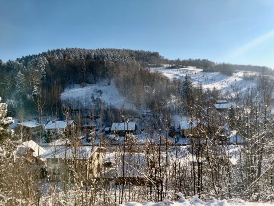 Tym razem nie ma tego problemu. Jest natomiast inny. Jak tam dojechać? Osób bez samochodu jest coraz mniej a nam pozostaje pociąg. Trasa przez Kraków, Tarnów, 6 godzin. Nie mamy tu opcji. O siódmej rano wyjeżdżamy do Krakowa. Tam przesiadka. Za Tarnowem wjeżdżamy w Sądecczyznę. Jest pięknie, ośnieżone pagórki i dalsze szczyty. Linia jest zelektryfikowana, ale jedzie się powoli. W końcu Piwniczna, w której byłem z rodzicami kilka razy na wakacjach, Muszyna i dojazd do Krynicy. Już na stacji okaże się, że w tym samym pociągu było też kilka innych osób z naszej grupy.