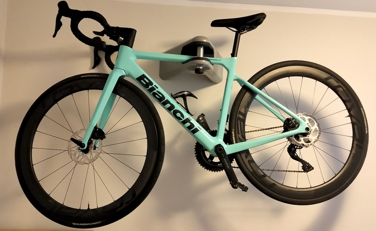 Jest jeszcze sprawa przechowania roweru. Poprzednio, wyjeżdżając z Polski, zostawiłem go w sklepie w Rybniku. Teraz decyduję się na pozostawienie go w domu. Kupuję specjalny wieszak marki „Hiplock”, z zamkiem na klucz. Cena jest też specjalna, bo 700 złotych. Cztery kołki rozporowe o średnicy 12 mm zostają wkręcone w ścianę. Na pomoc przychodzi Pan Jasiu. Musi przynieść specjalną wiertarkę profesjonalną z silnikiem o zwiększonej mocy. W zwykłej wiertarce silnik spaliłby się w kilka minut. Inną zaletą wieszaka jest to, że rower wisi pod sufitem i nie zabiera cennego miejsca na podłodze.
