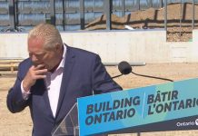 Premier Ontario Doug Ford znalazł się w piątek w trudnej sytuacji, gdy pszczoła wpadła mu do ust i dostała się do gardła.