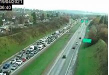 Ustanowienie policyjnych punktów kontrolnych spowodowało ogromne korki na autostradach granicznych Quebecu.