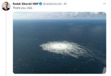 Europoseł PO Radosław Sikorski skomentował na twitterze wyciek z Nord Stream sugerując że odpowiedzialne są Stany Zjednoczone.