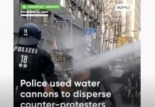 Ruptly zamieścił materiał filmowy przedstawiający aktywistów Antify próbujących protestować przeciwko blokadom we Frankfurcie...