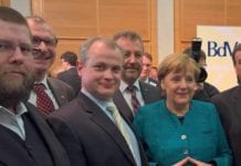 Na zdjęciu Roland Hau obok Angeli Merkel
